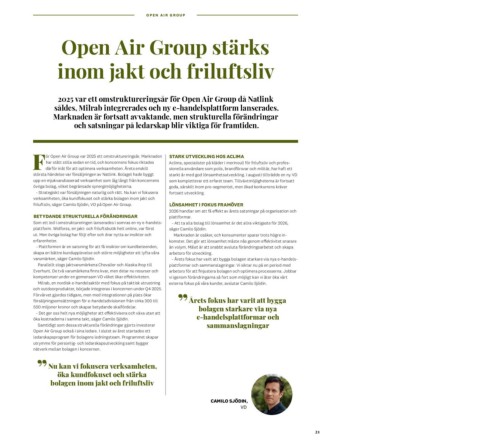 friluftsliv, säger Camilo Sjödin, VD på Open Air Group. 2026 handlar om att få effekt av årets satsningar på organisation och