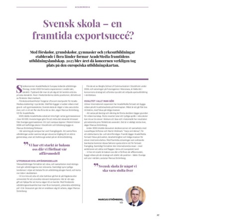 Marcus Strömberg förklarar: Under 2025 inledde dessutom skolkoncernen ett samarbete med