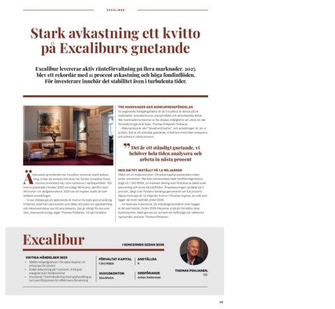 litet, oberoende bolag, säger Thomas Pohjanen, VD på Excalibur. är de som består. Under 2026 fokuserar vi på att fortsätta växa