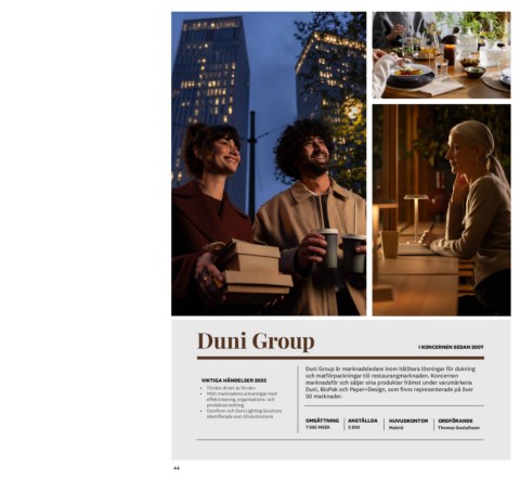 VIKTIGA HÄNDELSER 2025 Duni Group är marknadsledare inom hållbara lösningar för dukning