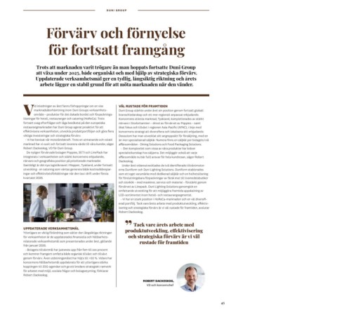 marknadsåterhämtning inom Duni Groups verksamhets Duni Group stärkte under året sin position genom fortsatt globalt