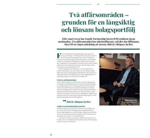 FPI är ett familjeägt investeringsbolag som grundats av tre ARNE KARLSSON,