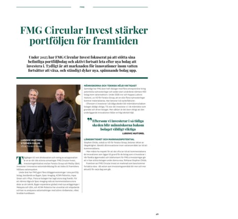Under 2025 har FMG Circular Invest fokuserat på att stötta sina