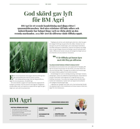 Efter två utmanande år med svagare skörd kan BM Agri åter- TAJMAD INVESTERING STÄRKTE RESULTATET