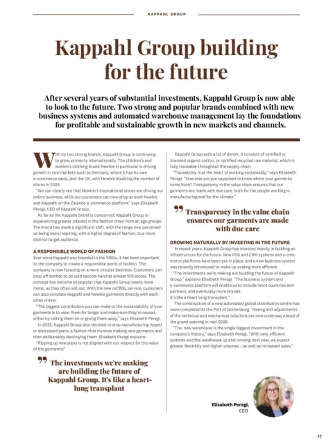 concept has become so popular that Kappahl Group needs more Group,” explains Elisabeth Peregi. “The business system and