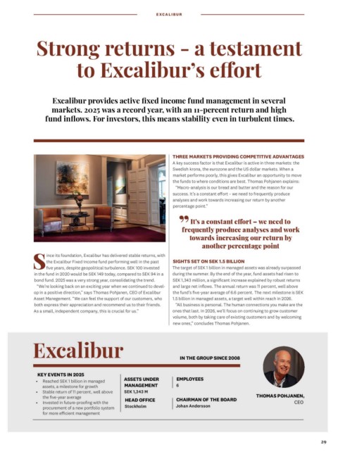 op in a positive direction,” says Thomas Pohjanen, CEO of Excalibur The target of SEK 1 billion in managed assets was already surpassed