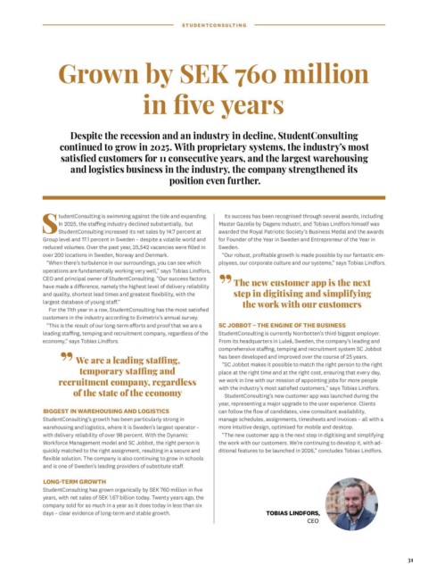 and is one of Sweden’s leading providers of substitute staff. ditional features to be launched in 2026,” concludes Tobias Lindfors.