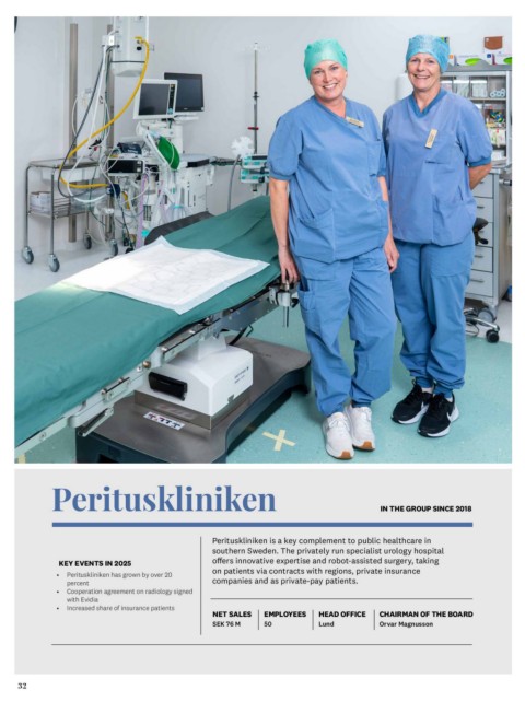 KEY EVENTS IN 2025 Perituskliniken is a key complement to public healthcare in