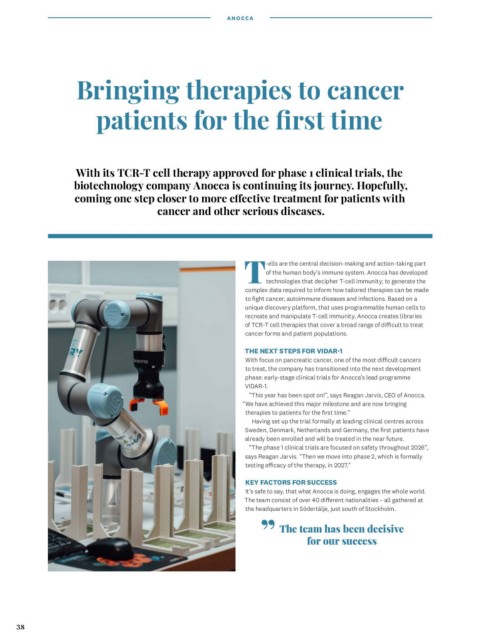 of the human body’s immune system. Anocca has developed
