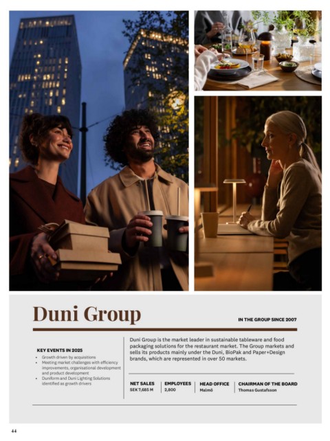 KEY EVENTS IN 2025 Duni Group is the market leader in sustainable tableware and food