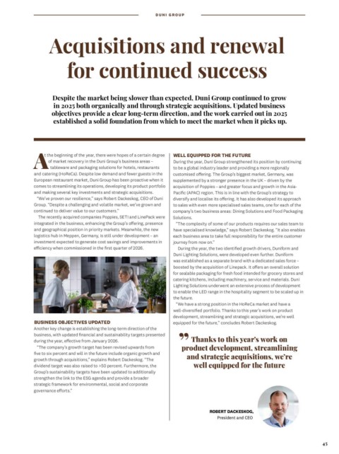 “We’ve proven our resilience,” says Robert Dackeskog, CEO of Duni to sales with even more specialised sales teams, one for each of the