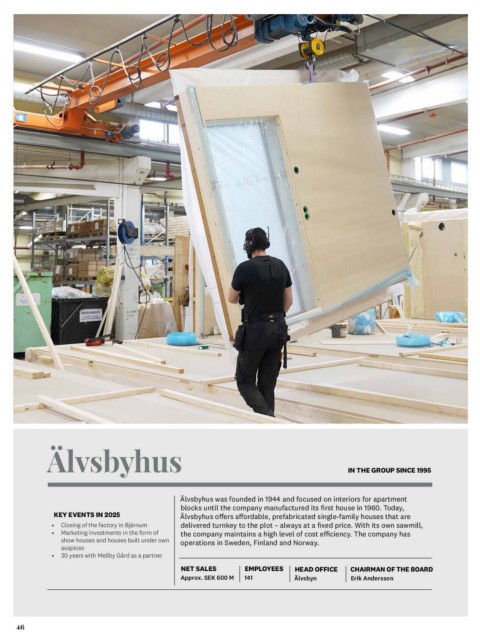 KEY EVENTS IN 2025 Älvsbyhus was founded in 1944 and focused on interiors for apartment