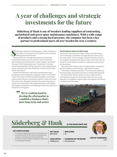 Söderberg & Haak had a challenging year in 2025. Expectations INVESTMENTS AND FUTURE PLANS