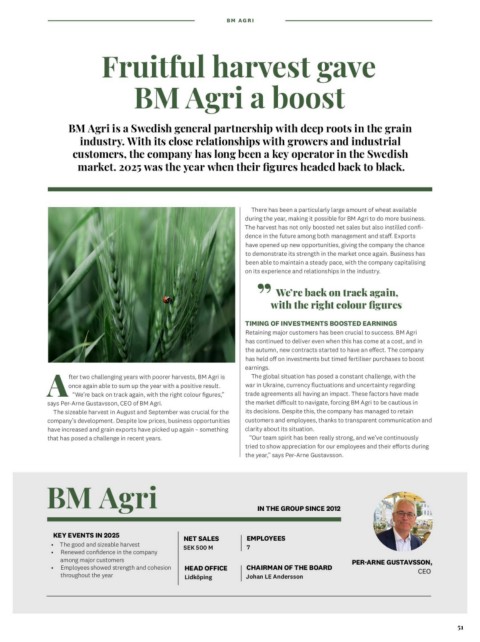 says Per-Arne Gustavsson, CEO of BM Agri. TIMING OF INVESTMENTS BOOSTED EARNINGS
