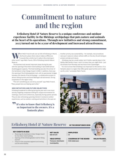 other world,” says Malin Franck, CEO of Eriksberg Hotel & Nature