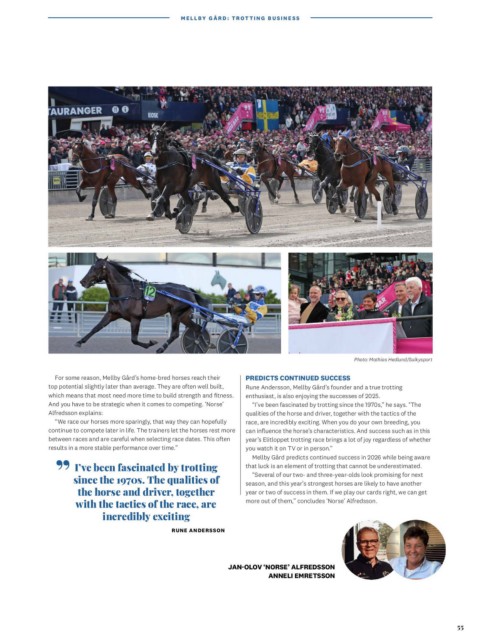 top potential slightly later than average. They are often well built, Rune Andersson, Mellby Gård’s founder and a true trotting