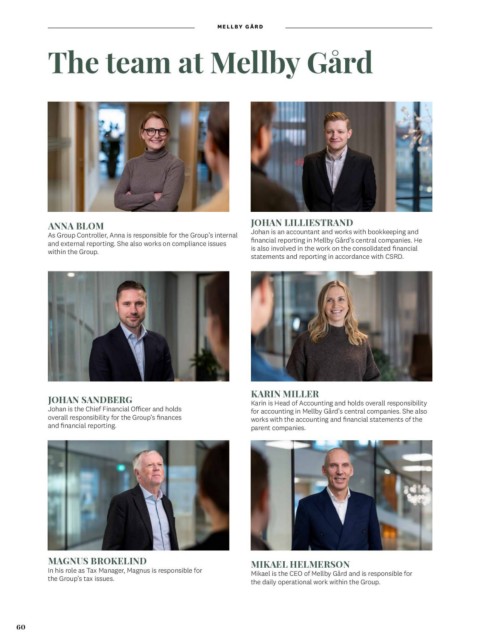 In his role as Tax Manager, Magnus is responsible for Mikael is the CEO of Mellby Gård and is responsible for