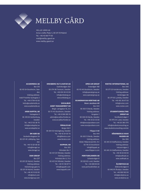 ACADEMEDIA AB ERIKSBERG VILT & NATUR AB OPEN AIR GROUP ROXTEC INTERNATIONAL AB