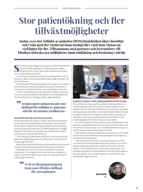 i början av 2024 uppdraget att erbjuda patienter i Region Perituskliniken har idag drygt 50 anställda och god kapacitet att ta