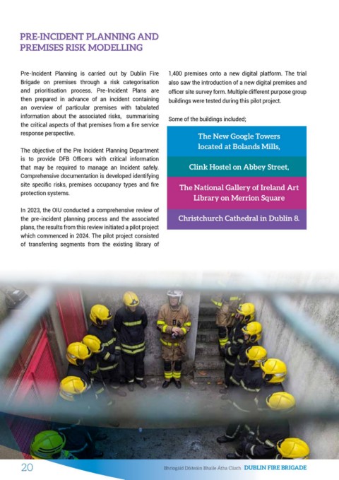 Pre-Incident Planning is carried out by Dublin Fire 1,400 premises onto a new digital platform. The trial