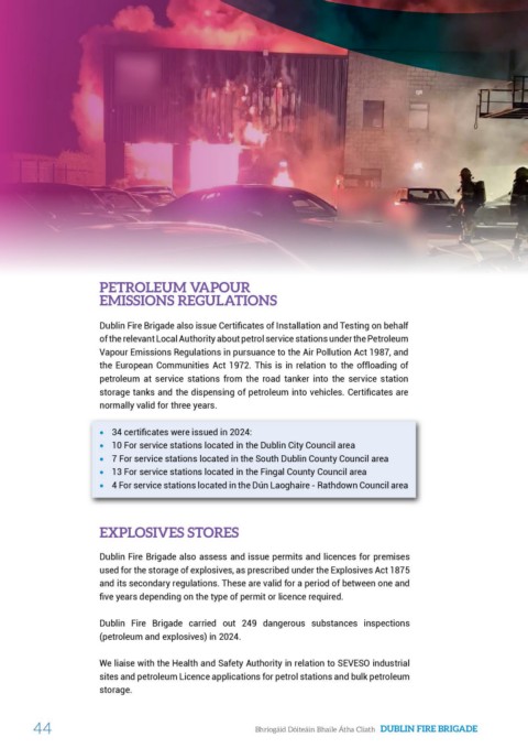 Dublin Fire Brigade also assess and issue permits and licences for premises