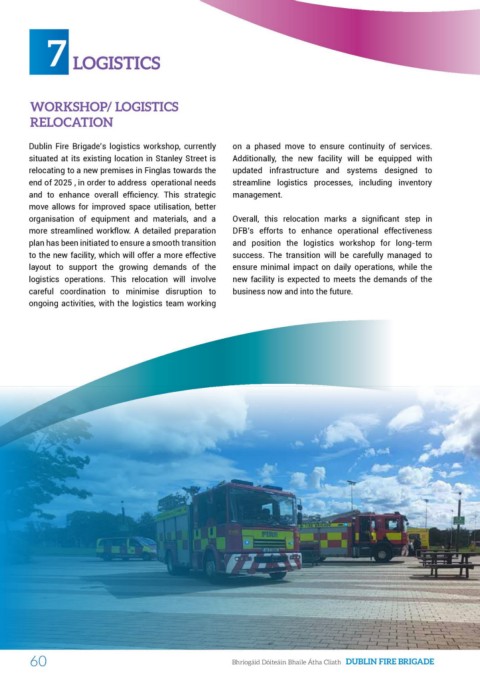Dublin Fire Brigade’s logistics workshop, currently on a phased move to ensure continuity of services.