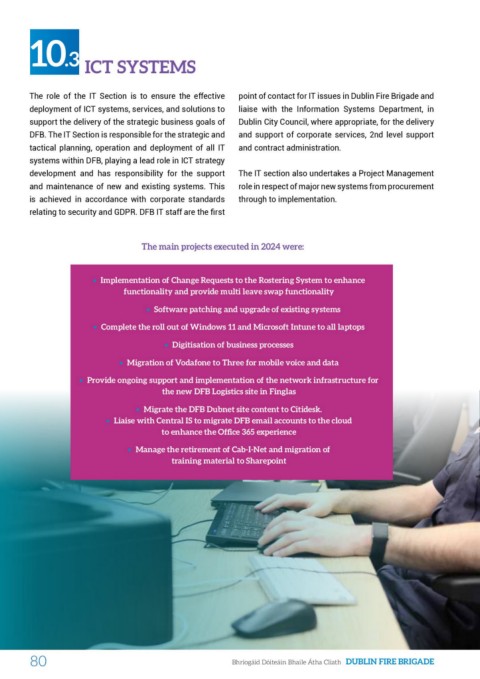 The role of the IT Section is to ensure the effective point of contact for IT issues in Dublin Fire Brigade and