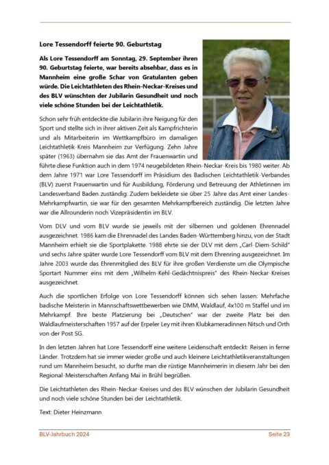 dem Jahre 1971 war Lore Tessendorff im Präsidium des Badischen Leichtathletik-Verbandes