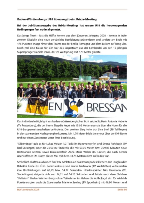 Baden-Württembergs U18 überzeugt beim Brixia-Meeting