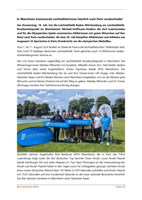 Dem rund 70-köpfigen deutschen Leichtathletik-Team gehörten auch 14 Athlet:innen baden-