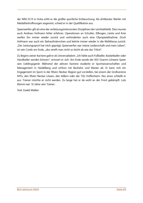 „Der Leistungssport hat mich geprägt, Speerwerfen war meine Leidenschaft und mein Leben“,