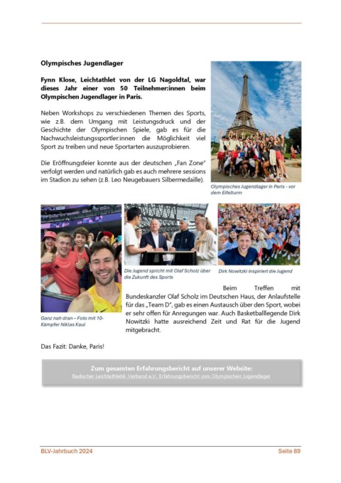 Badischer Leichtathletik-Verband e.V.: Erfahrungsbericht vom Olympischen Jugendlager