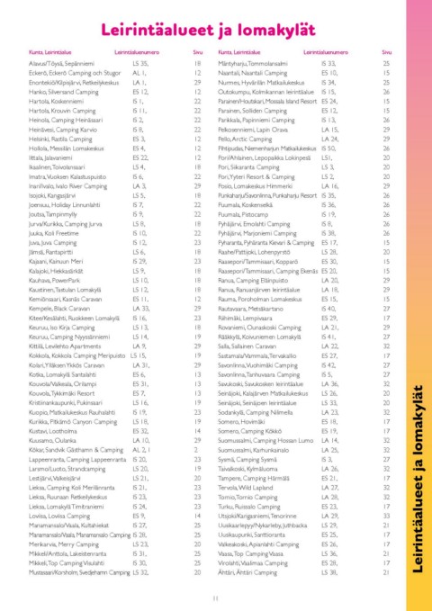 Imatra,Vuoksen Kalastuspuisto IS 6, 22 Pori,Yyteri Resort & Camping LS 2, 29