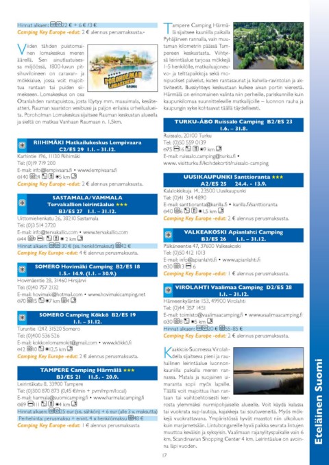 E-mail: hovimaki@hotmail.com • www.hovimakicamping.net Camping Key Europe -edut: 1 € alennus perusmaksusta.