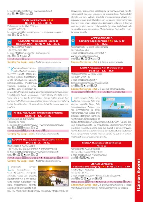 pohjoispuolella. Moderneja, E-mail: info@campingkoli.fi •