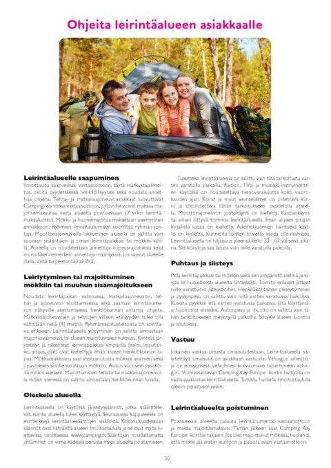 Ohjeita leirintäalueen asiakkaalle