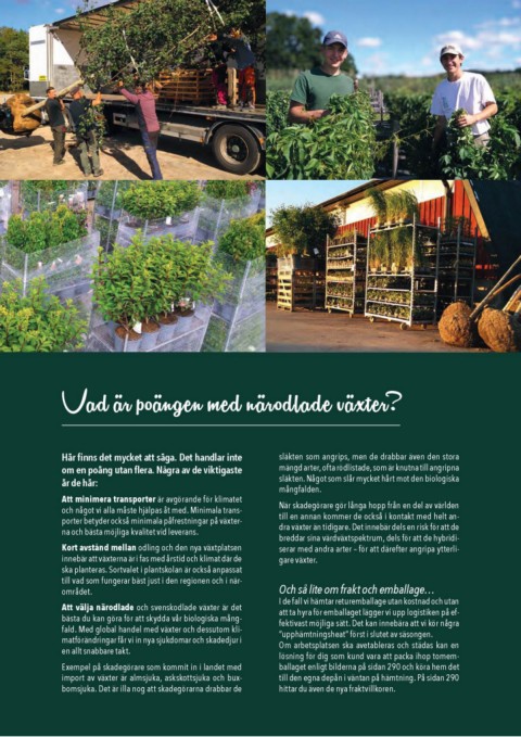 Att välja närodlade och svenskodlade växter är det I de fall vi hämtar returemballage utan kostnad och utan