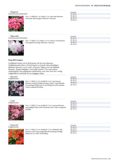 växtbetingelser som städsegröna rododendron, men växer även bra i vanlig