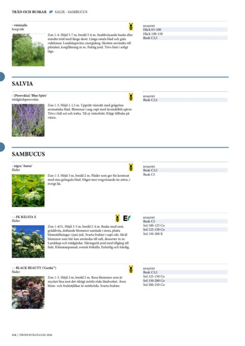 TRÄD OCH BUSKAR SALIX - SAMBUCUS
