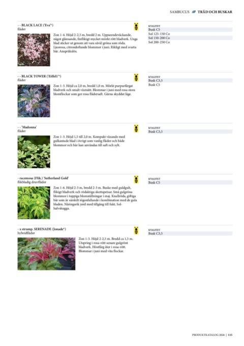 SAMBUCUS TRÄD OCH BUSKAR