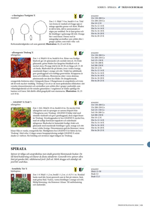 Zon 1-4. Höjd 8-10 m, bredd 6-8 m. Rönn vars frodiga Utr 200-250 Co