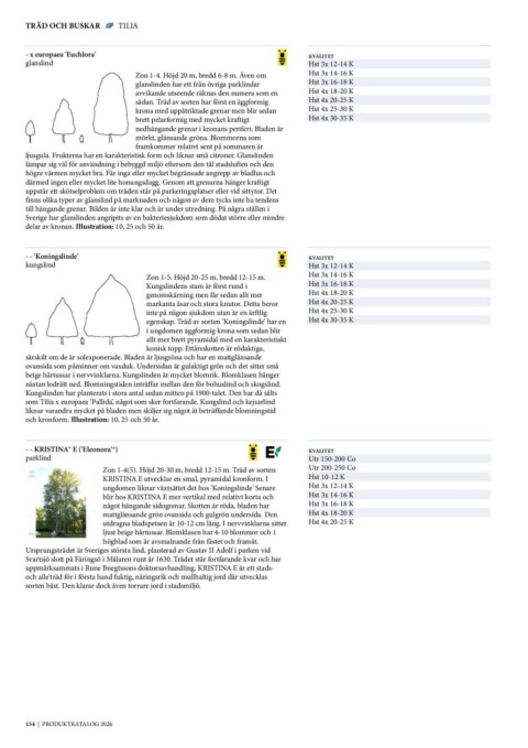egenskap. Träd av sorten ’Koningslinde’ har en Hst 4x 30-35 K