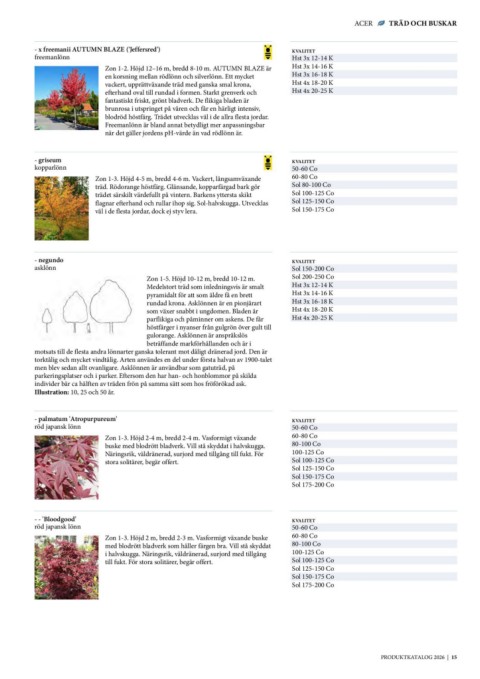 Zon 1-2. Höjd 12–16 m, bredd 8-10 m. AUTUMN BLAZE är Hst 3x 14-16 K
