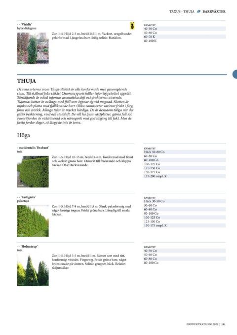De rena arterna inom Thuja-släktet är alla konformade med genomgående Häck 50-80 Co