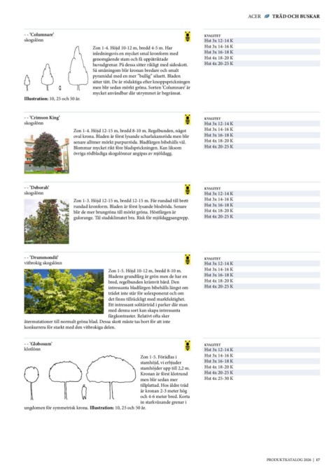 - - ’Columnare’ Zon 1-4. Höjd 10-12 m, bredd 4-5 m. Har KVALITET