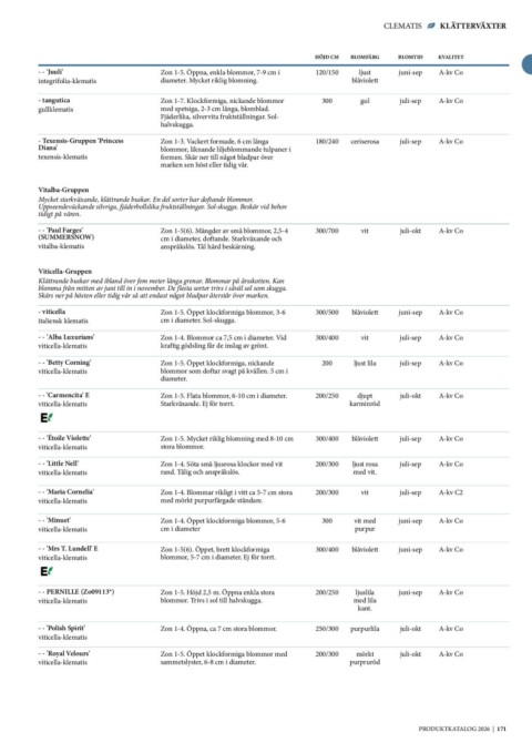 - viticella Zon 1-5. Öppet klockformiga blommor, 3-6 300/500 blåviolett juni-sep A-kv Co