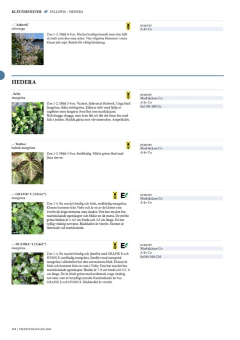 Zon 1-4. En mycket härdig och frisk, småbladig murgröna. A-kv Co
