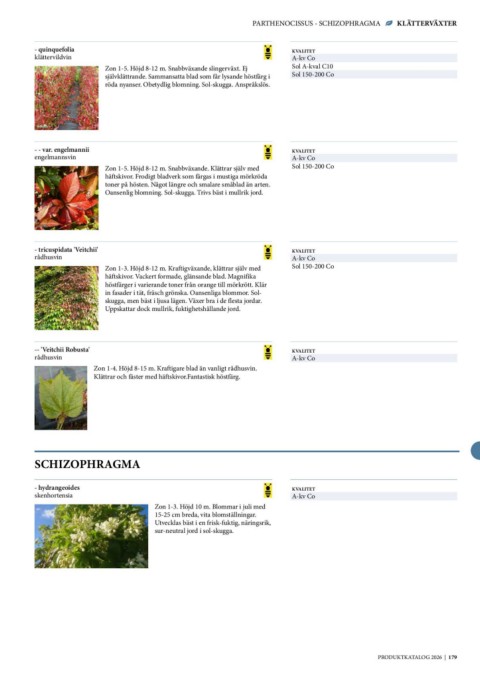 PARTHENOCISSUS - SCHIZOPHRAGMA KLÄTTERVÄXTER