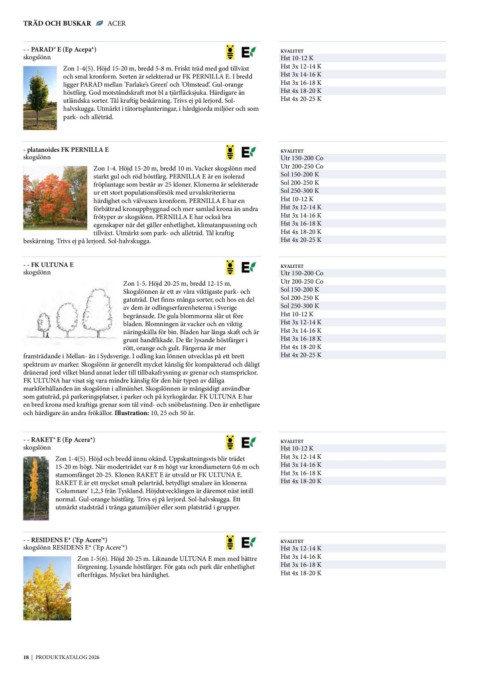 och smal kronform. Sorten är selekterad ur FK PERNILLA E. I bredd Hst 4x 18-20 K