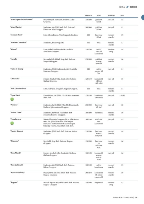 'Mme Legras de St Germain' Stor, tätt fylld. Stark doft. Buskros. Alba- HÖJD CM FÄRG BLOMTID ZON